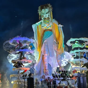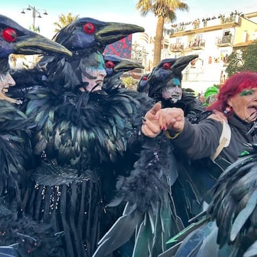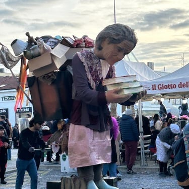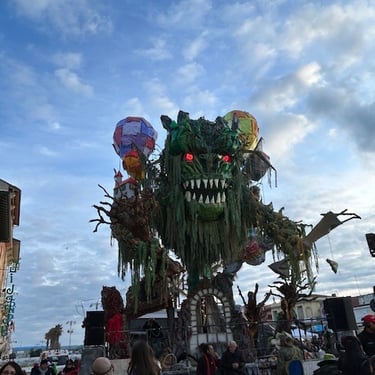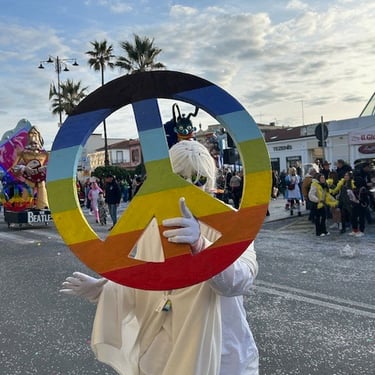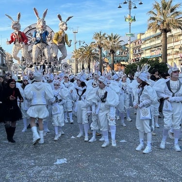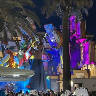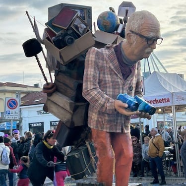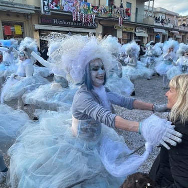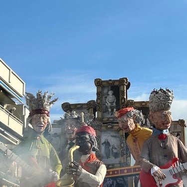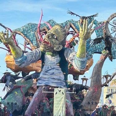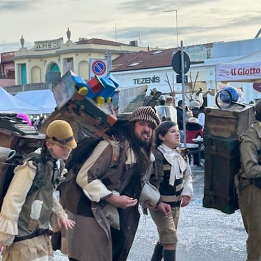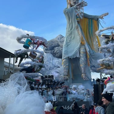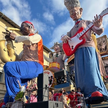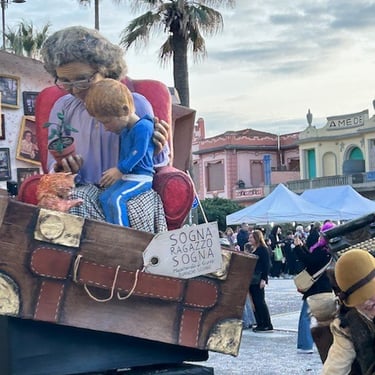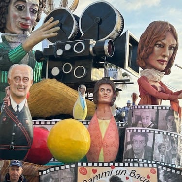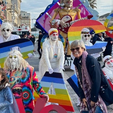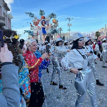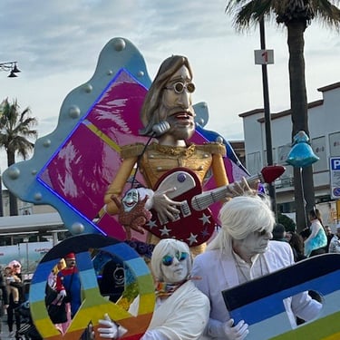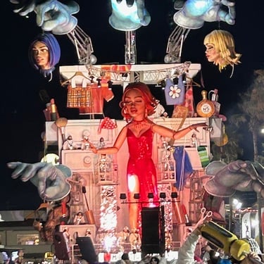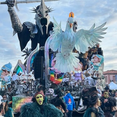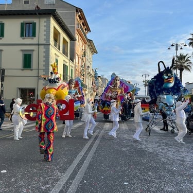 AFter hearing about the yearly Carnivale in Viareggio, Mel and I decided we had to go see for ourselves. Viareggio is a beach community and is only a 20 minute train ride from lucca, very easy to get to. as soon as we get to the train station we start seeing people dressed in costumes. once on the train we sat across from an adorable toddler dressed up with as a dinasaur with a painted frankenstein face. once we arrived in viareggio we walked the 6 or so blocks down to the parade which is held on the boulevard right next to the strand. Nothing can prepare you for this event. all the things we heard about it were true and then some. the floats are enourmous and are taller than the buildings. there is different music for each float. at night the floats are lit up. they are all made out of paper mache' and are manipulated by hand. even the moving eyes are maniuplated manually. the only electricity that can be used is for the lights and the music. when the beatles float came by mel and i proved ourselves to be true embarassing americans and began singing and dancing in the street! so much fun. i hope you enjoy the pics as much as we enjoyed the parade. if you are ever in italy in february, it is a must see!!!