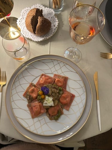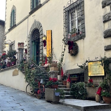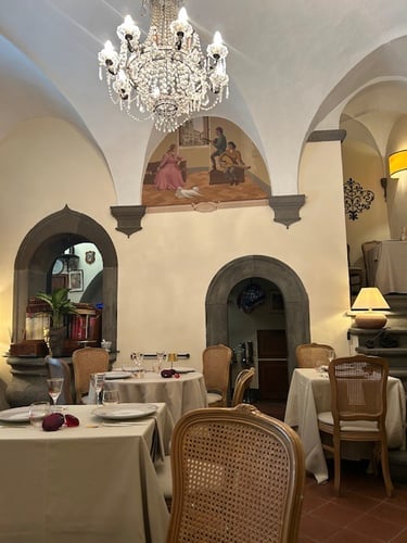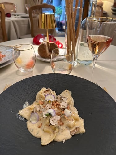 After a long long walk up the mountain, we went into the first restaurant we came across. What a treat. The ambiance and the food were spectacular and definitely worth the walk to get there. Mel had a beet ravioli stuffed with gorgonzola cheese. I had tortellini filled with pumpkin and topped with an Amaretto crumble and black truffles. We were greeted with a complimentary glass of prosecco and after the meal were treated again with a lemoncello aperitif.
