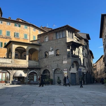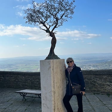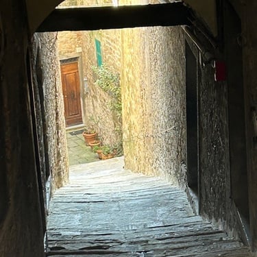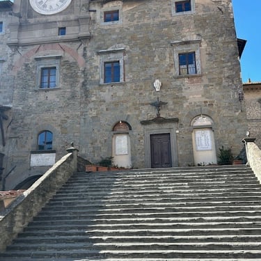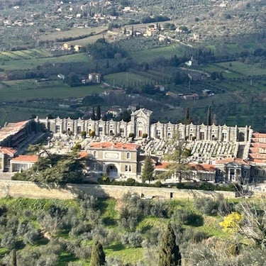 Upon my return from Switzerland, my friend from California, Mel, came for a visit. We decided to take a day trip to Cortona. As my lease is up in July, I have begun to toy with the idea of moving to a different town, so I wanted to check out Cortona (as in Under the Tuscan Sun). The train to Cortona took about 3 hours with a change in Florence. Upon arrival, we decided to walk up to Cortona. Although it was in the hills, it didn't look that far away. Boy were we wrong. It was very steep and there were cars racing up and down the winding road (flashback to my trip to Bagni di Lucca!) Although a bit unnerving, the walk was stunning. The views as we ascended were breathtaking. We kept stopping to take pictures, probably not the wisest idea the and the pictures just don't do it justice.