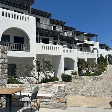 After two days in Athens we were off to Naxos. The largest and greenest of the Cyclades Islands which boasts towering mountains, rich valleys and breathtaking seascapes. In the villages high on the mountain tops, the residents wear traditional clothes and live off the land. At the entrance to the port of Naxos is the marble gate, Apollo temple, dating back to the 6th century BC. The legend is that this place is known as "Portara". The god Dionysius found Ariandni there and being abandoned by Thesus. The island is also host of Cycladic architecture with Venetian castles, monastaries and medieval churches. We took the ferry out of Athens and it was a four hour trip. The ferry was huge with assigned seats, much like an airplane. We relaxed with a glass of wine and watched a movie (always glad to have a laptop handy!) We arrived in Naxos and was met by our driver. It was a 15 minute ride to our hotel, the Melidron. The small hotel was fantastic. A great staff and lovely views. It was walking distance to the beach and the small town where it was located was a nice change from Athens and the port of Naxos.