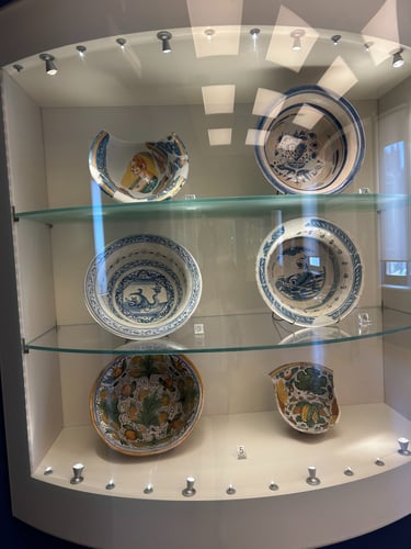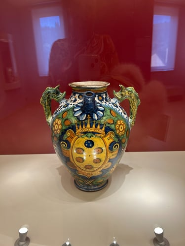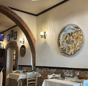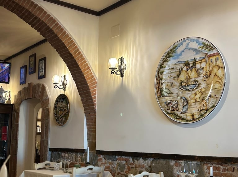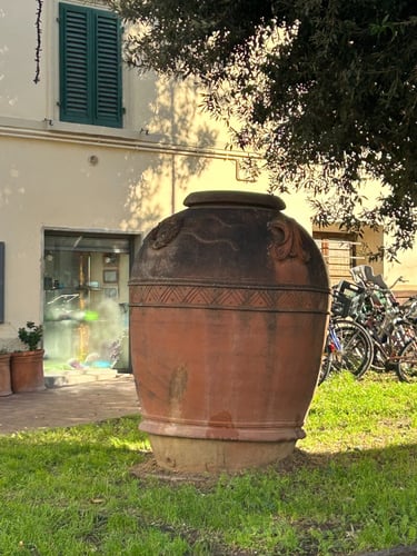 After roaming the streets for over an hour looking for the Museo della Ceramica of Montelupo Fiorentino. I decided to stop for lunch before the witching hour (the time when Italians close shop for the midday break). Finding food between the hours of 3-6 can be very difficult. I chose a charming restaurant called Osterio di Fuori. Fantastic food. However, when I asked the waiter and the owner how to get to the museum, I discovered that they did not speak enough English and I did not speak enough Italian. They called over a regular patron who had just walked in with a very loud, joyous foursome. The gentleman walks over and I said "so I assume you speak English". He laughs and asks how can he help. When I explain that I am trying to find the Museum of Ceramics, he asks if I am interested in Italian Ceramics. I reply "yes, that is why I came here from Lucca." He asks how long I am staying in Lucca and when I told him I live there now, he congratulates me and proceeds to explain that he has a store that sells ceramics in Montelupo and, in fact, owns the factory that provides the Italian ceramics to Crate and Barrel, Pottery Barn and Anthropology. Well, of course, I was stunned. He then gives me his number and tells me to call him and he will give me a tour of his factory and we can custom design my ceramics. I was on cloud nine! Sometimes it pays to speak Italian so poorly. I am calling on Monday and as soon as I tour .his facility I will be sure to post. Here are some pics from Montelupo Fiorentino Ciao