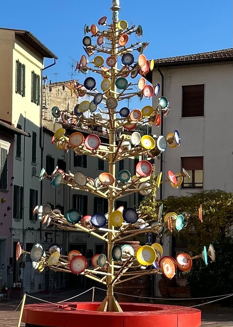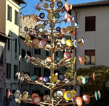 Today I spent the last day of November hunting down Italian ceramics. There are two main locations that supply the majority of Italian Ceramics. Deruta near Umbria due to the Tiber River and Montelupo near Florence located near the Arno River. These rivers provide the natural clay deposits perfect for production of maiolica. As Florence is so near to Lucca, I chose to go to Montelupo. The train left Lucca and a quick hour and a half later I arrived in the heart of Montelupo. Another beautiful medieval town, although not enclosed by walls, Montelupo is a beautiful town filled with steep cobblestone streets. The town Piazza has a Christmas tree made of ceramic plates as soon as you walk up from the train station.
