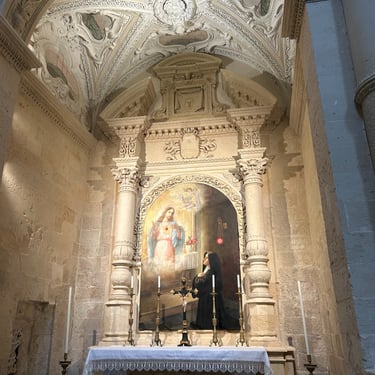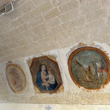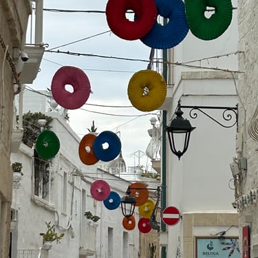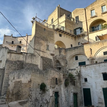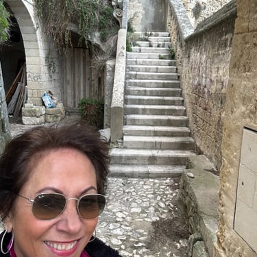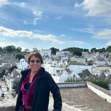 I have been a slacker! Last week I spent 5 days in Puglia and I am just now blogging (because I am off to another Medieval town tomorrow, Montelupo, and I have to catch up.) So Puglia, a region in Southern Italy, was amazing! It took 10 hours on a train to get there. I started in Bari, the capital of Puglia. The first night I shopped and shopped and shopped. I don't even like shopping but I had no choice, so many great stores. Not thinking ahead to how I was going to get all this home on a train for 10 hours, much less lug it around for the next four days, I did it anyway. The next day I signed up for a tour to Alberobello and Matera. Alberobello is the town with the whitewashed trulli huts with conical roofs. Our tour guide explained that at the top of the cone if it is flat, it is a regular family. A ball at the top means the family owns multiple properties and a cross atop indicates that someone in the family is a member of the Vatican. It was very steep and very beautiful. Perfect weather and great food! This region is known for olive oil and although I did not buy olive oil, I did purchase a beautiful leather belt and had a delicious Periznotte a thin pastry filled with gorgonzola and walnuts washed down with a cold Peroni and a pistachio pastry...It was 11:00am...gotta love Italy!