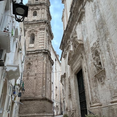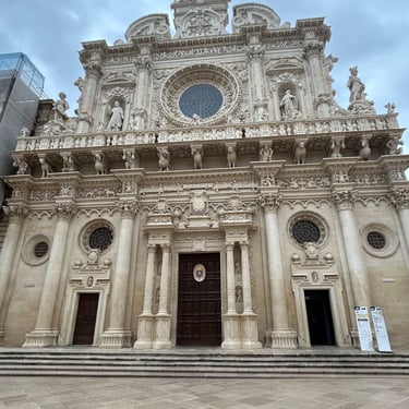 After two days in Bari, it was off to Monopoli. The plan was two days in Monopoli, but after the first day, I was done. Not a whole lot to see. On the suggestion of a friend (thanks Mel!) I went further south down to Lecce. What a great choice. Hands down the highlight of the week. A town of Baroque churches that take your breath away. Also, a new culinary treat... the Pucce! OMG the food just keeps getting better and better. A Pucce is sort of a sandwich made of very very thin crust pastry. I ended up having one for lunch with Burrata and basil and one for dinner with Sausage, cheese and jam.