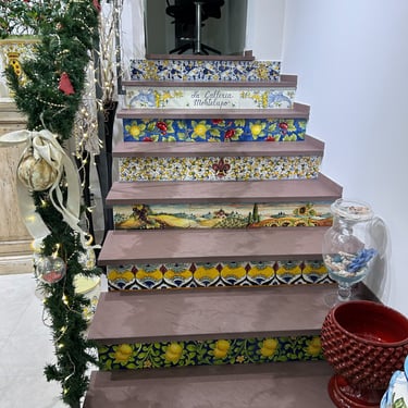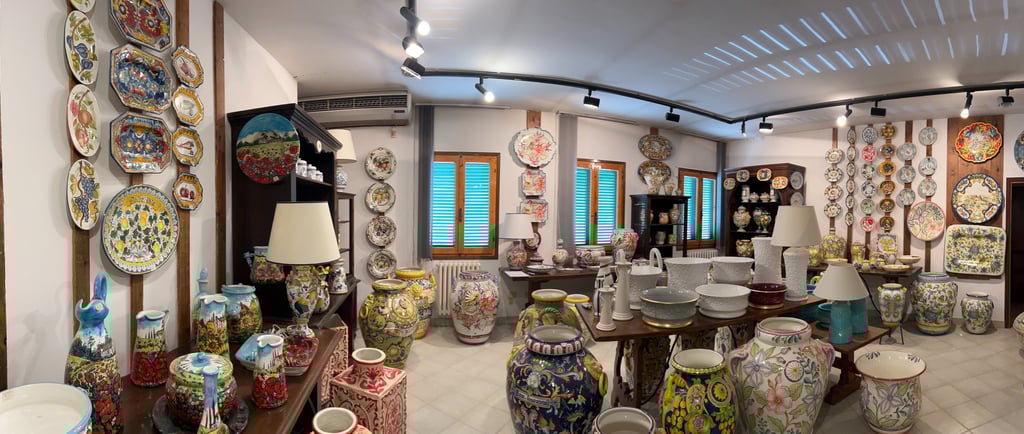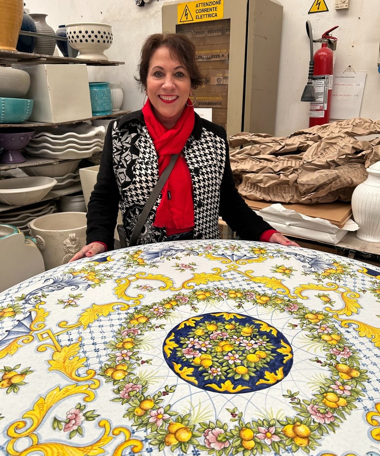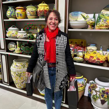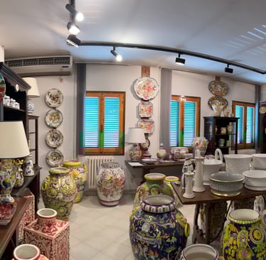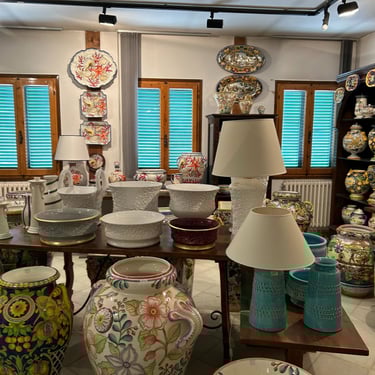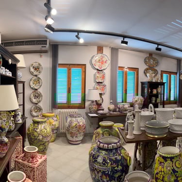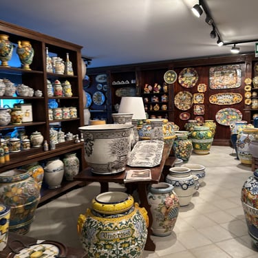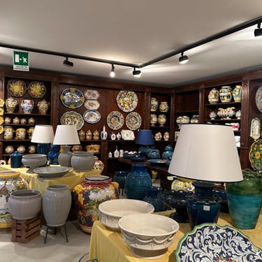 After the drying process the pieces are placed in the Kiln at 2000 degrees. Once they are fired, they are hand painted then fired again at approximately 900 degrees. Then Matteo took me upstairs to show me the final products. It took my breath away. Room after room of the most beautiful creations. I was able to hand pick my shapes and Matteo helped me pick different colors and designs for all my pieces. Although it will take 3 months for them to be ready, I did walk away with 2 pieces from his showroom today.